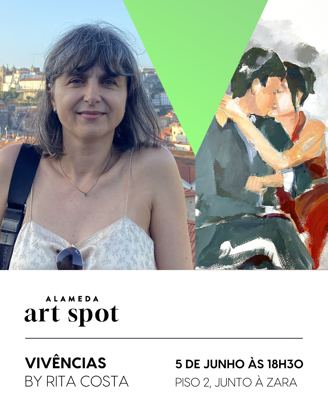 “’Vivências’ é uma exposição que nos faz refletir sobre as memórias do passado e os momentos do presente, numa combinação incrível entre pintura e poesia. À semelhança de todas as exposições que temos vindo a promover no Alameda Shop&Spot, o trabalho da Rita é uma arte que queremos dar a conhecer aos nossos visitantes, consolidando o Art Spot num espaço de referência no que respeita à arte portuense”, refere Pedro Assunção, Diretor do Alameda Shop&Spot.