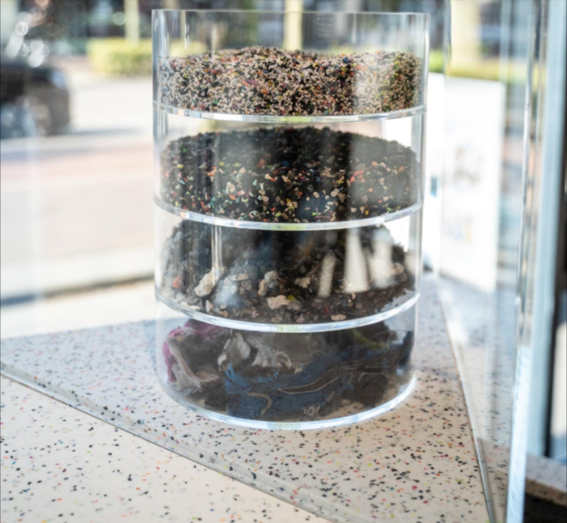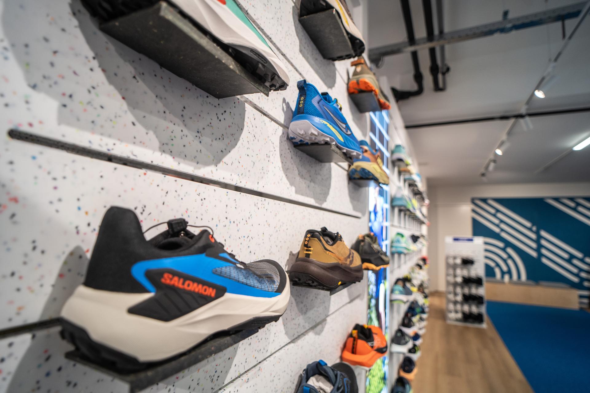 De hardloopspecialist gaat nu een stap verder. In samenwerking met FastFeetGrinded, dat ’s werelds enige schoenenrecyclingmachine heeft, en productiepartners Pyrasied, Swooda en Soboçan zijn de hardloopschoenen verwerkt in het interieur van de winkel. Zo is het rubbergranulaat gebruikt voor wandpanelen, toonbanken en een speciale hardloopvloer – mét zichtbare spikkels van de oude schoenen.