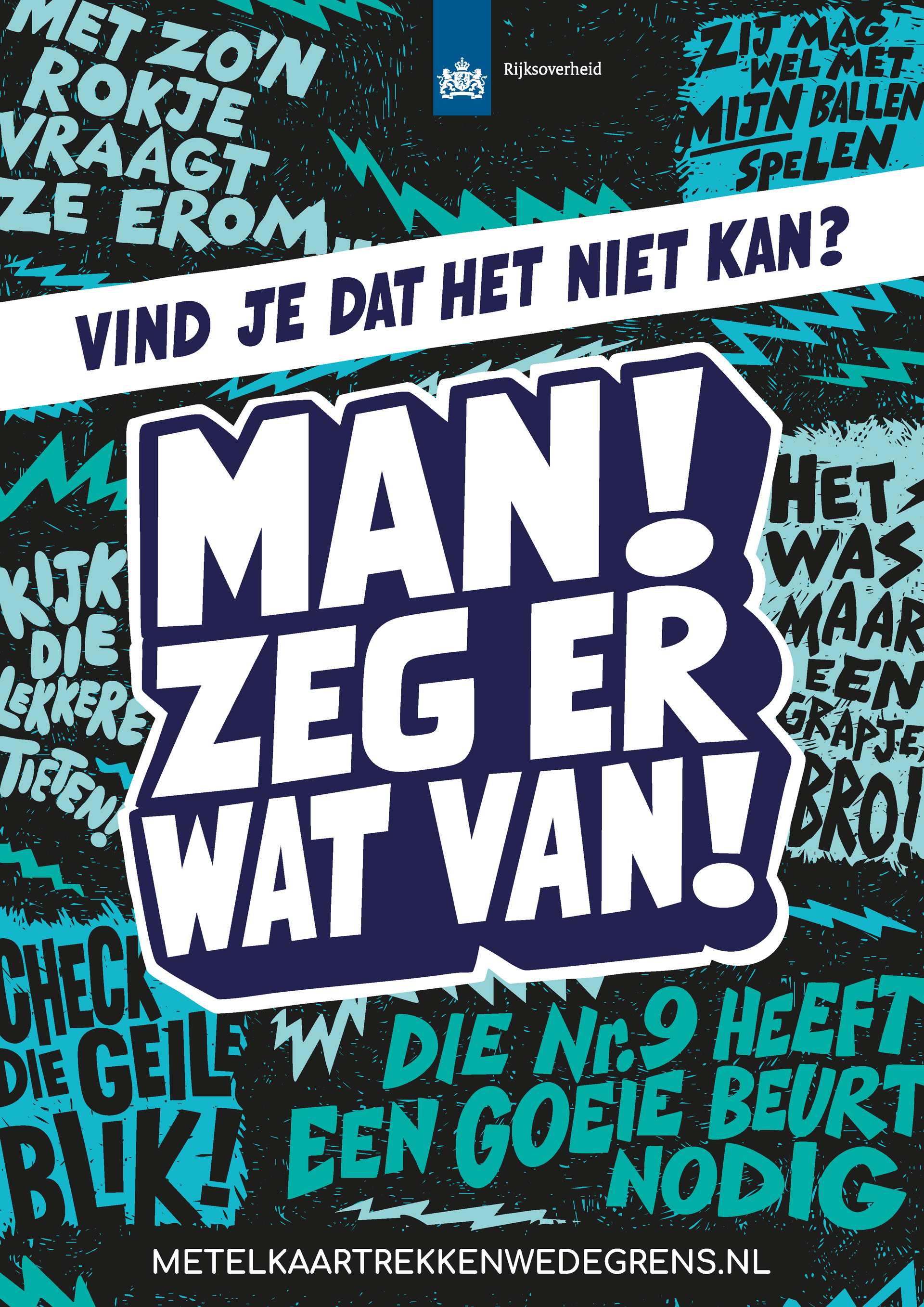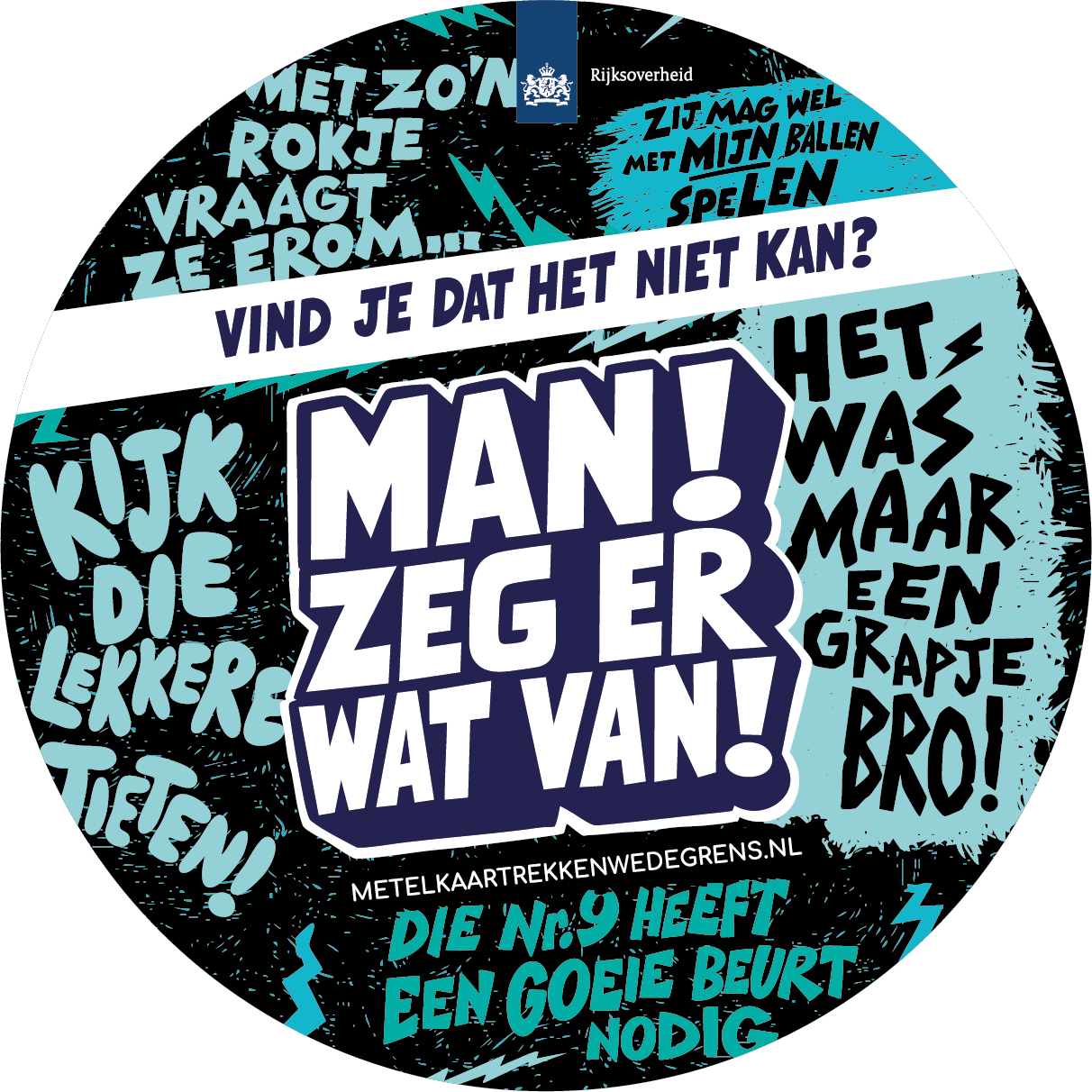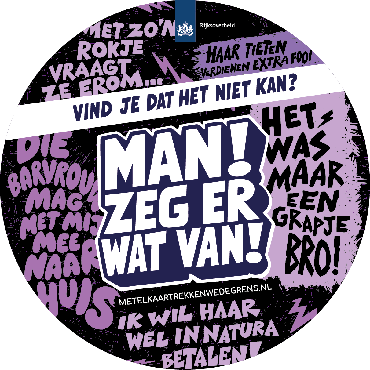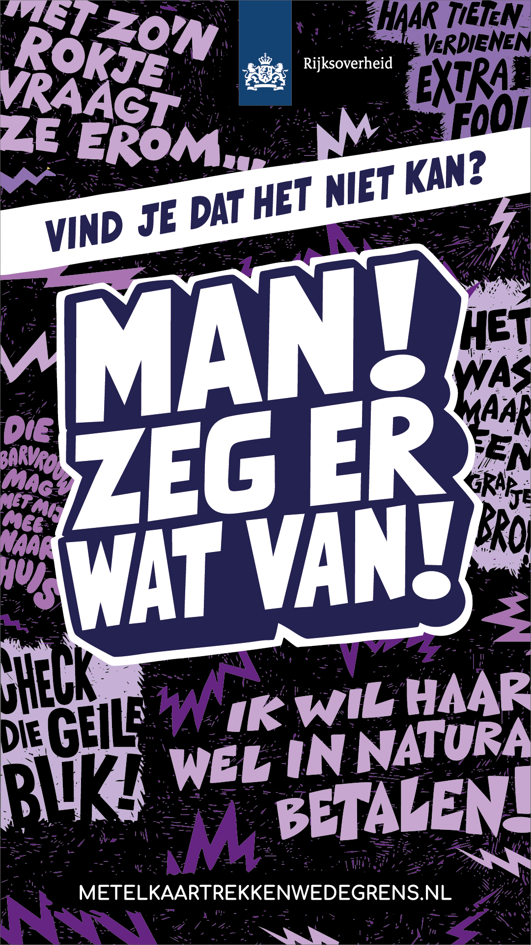 Met de campagne 'Man, zeg er wat van!' wil de Rijksoverheid mannen motiveren om andere mannen in hun sociale kring (zoals vrienden, collega’s of sportteamgenoten) aan te spreken op seksueel grensoverschrijdend gedrag richting vrouwen.