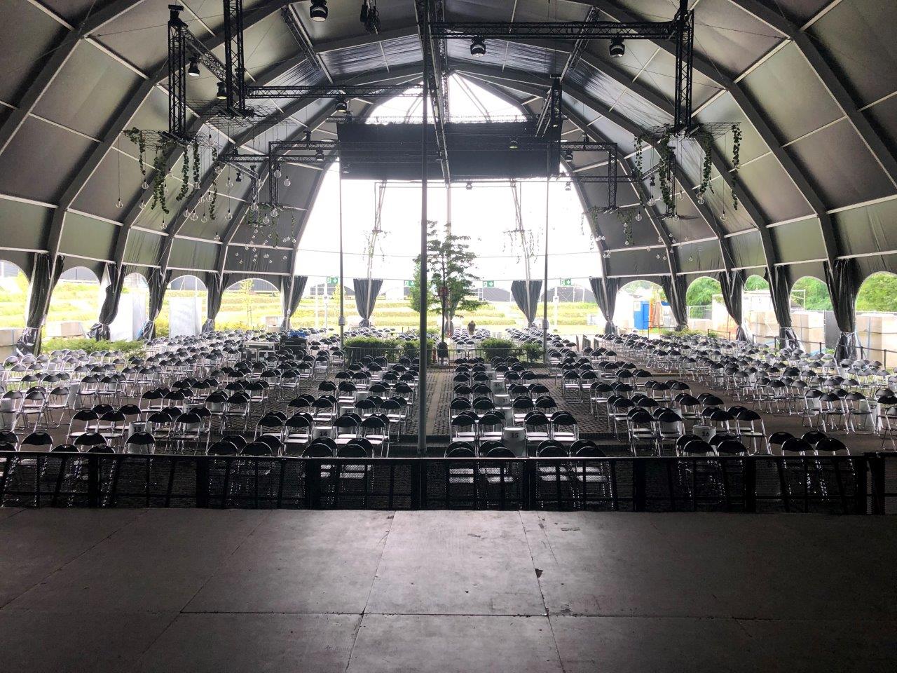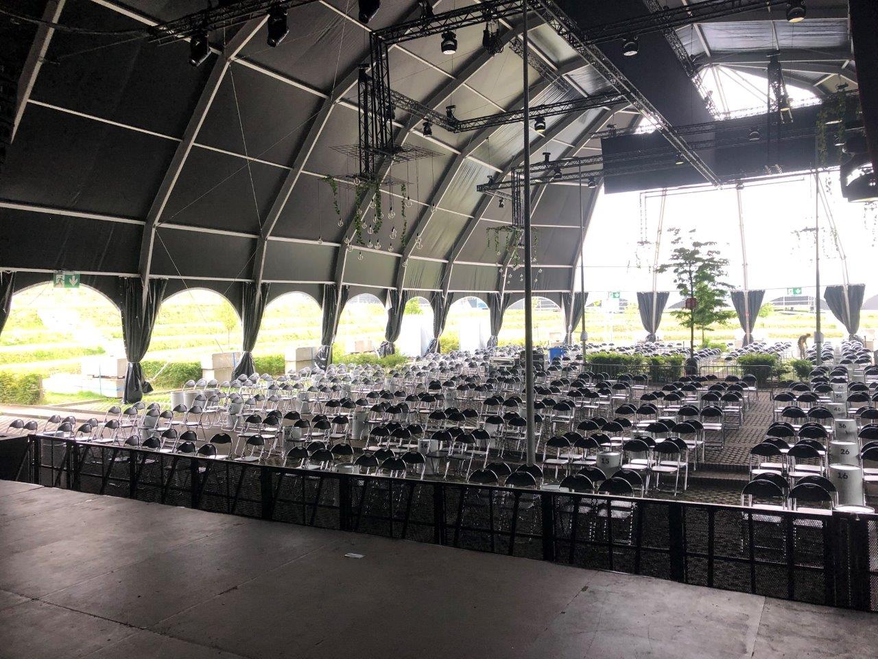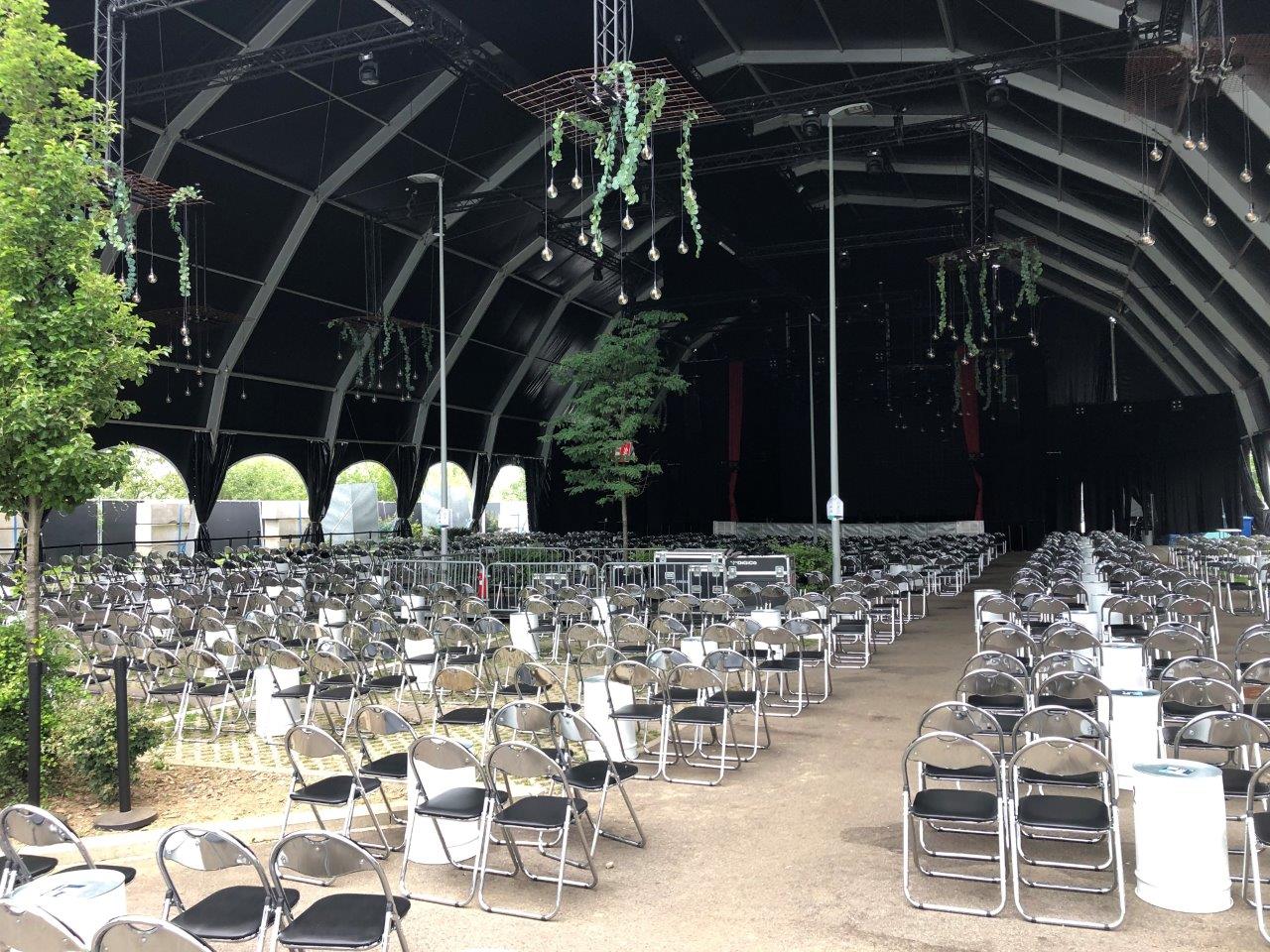 Een state-of-the-art openluchttent beschermt als een paraplu tegen zon en regen; er zijn bubbels rond een tafeltje; en de capaciteit kan elk moment opgedreven of afgebouwd worden in functie van de heersende coronamaatregelen. Die schaalbaarheid of moduleerbaarheid, van 800 zitplaatsen (met tafeltjes in clubsfeer) tot 2.500 staanplaatsen, is een grote troef volgens Mergaerts.