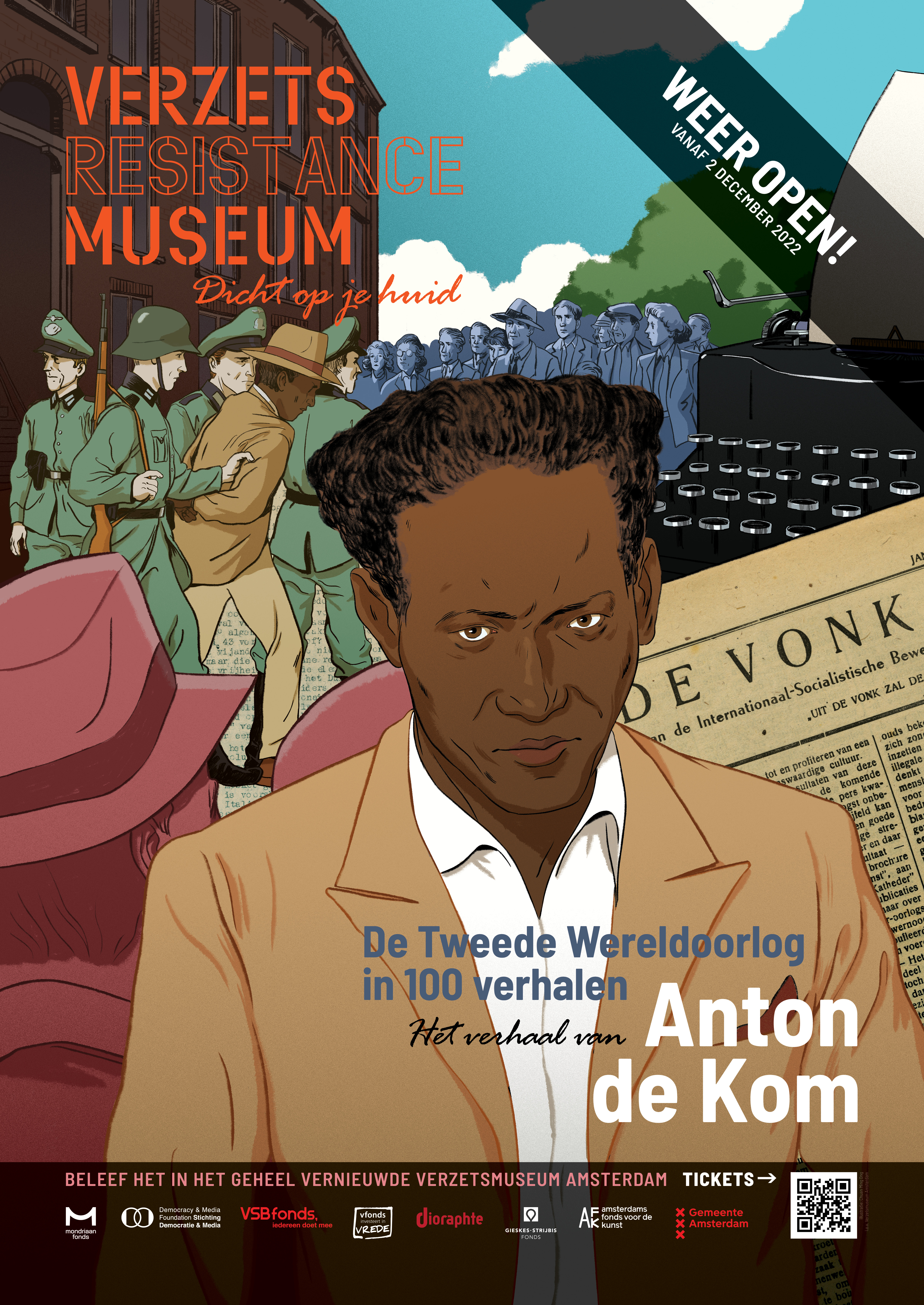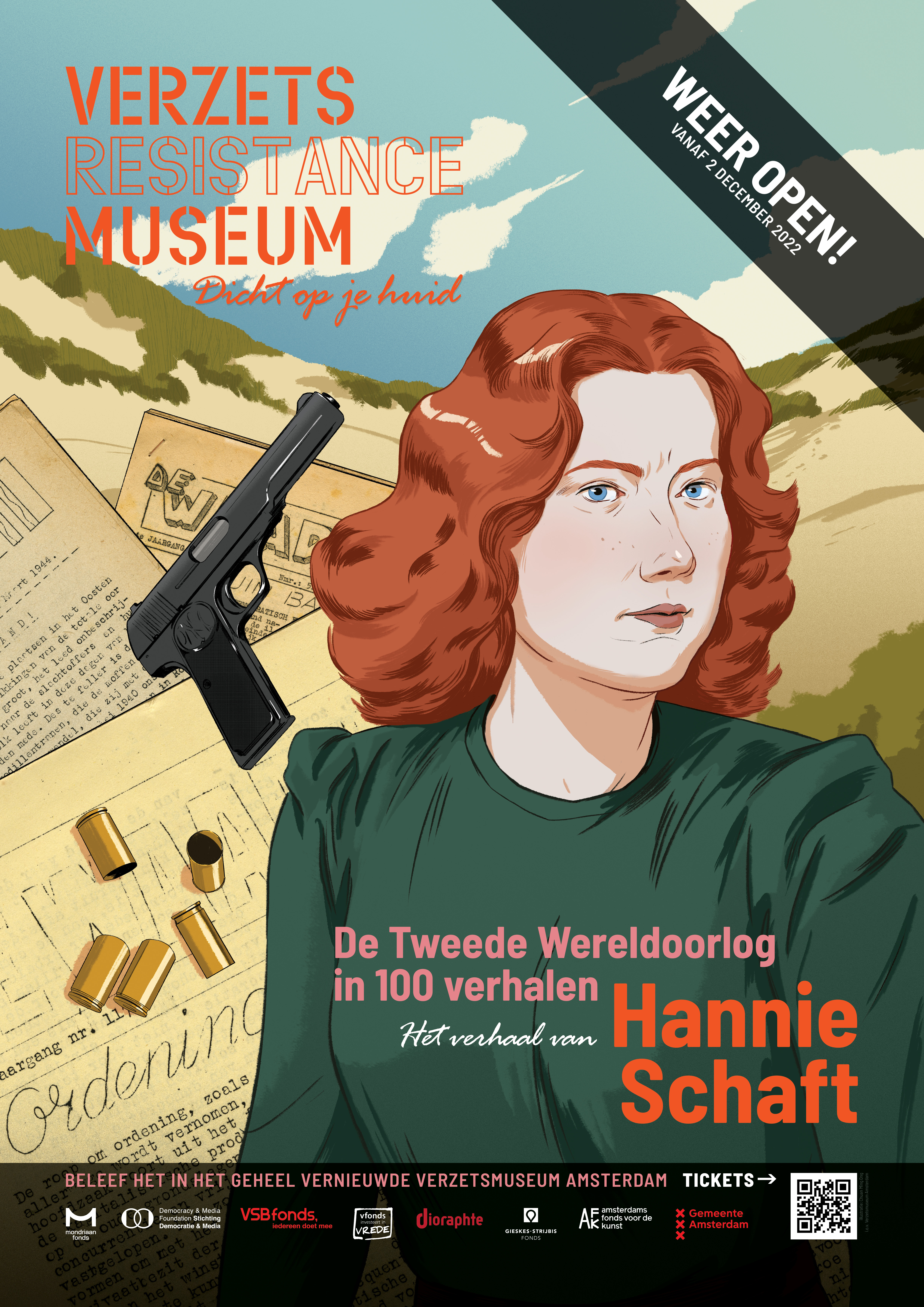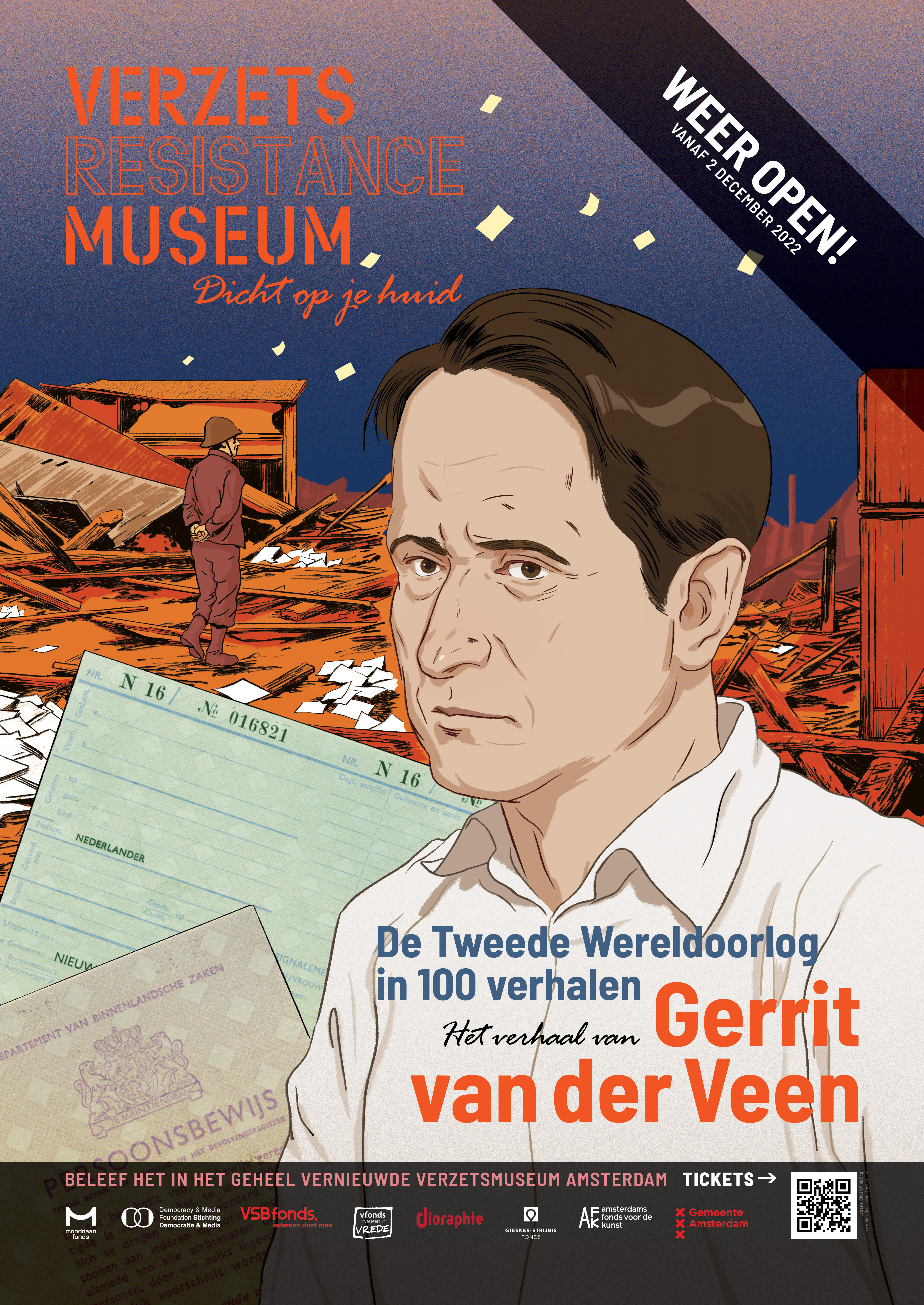 In het vernieuwde museum wordt de geschiedenis van de Tweede Wereldoorlog in Nederland verteld aan de hand van 100 persoonlijke verhalen. De verhalen van drie verzetsmensen kregen een plek in de campagne: Hannie Schaft, Anton de Kom en Gerrit van der Veen.